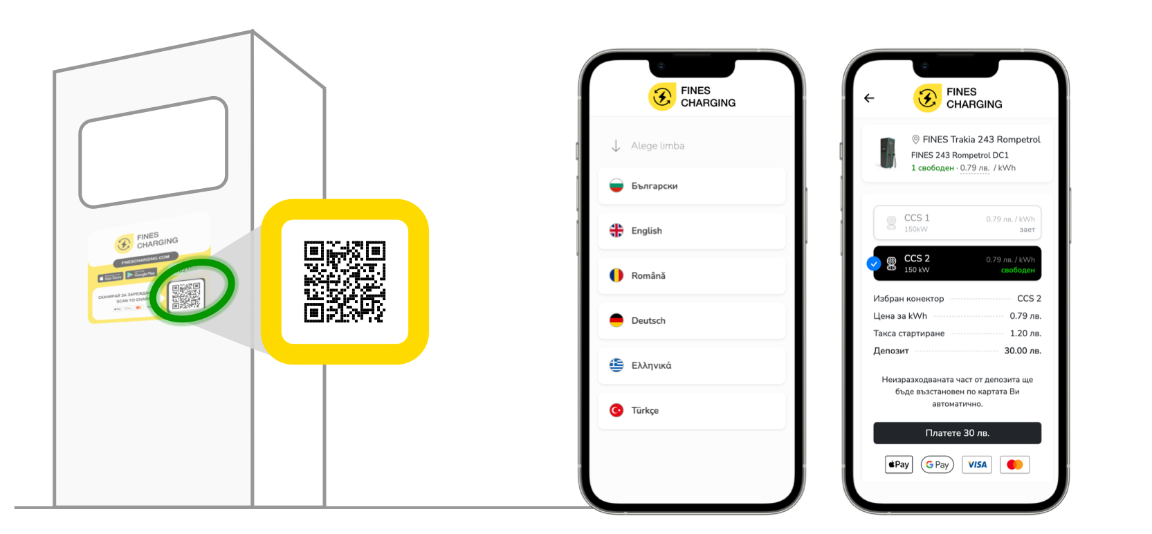 За целта просто сканирайте QR кода на станцията и последвайте инструкциите на телефона си.